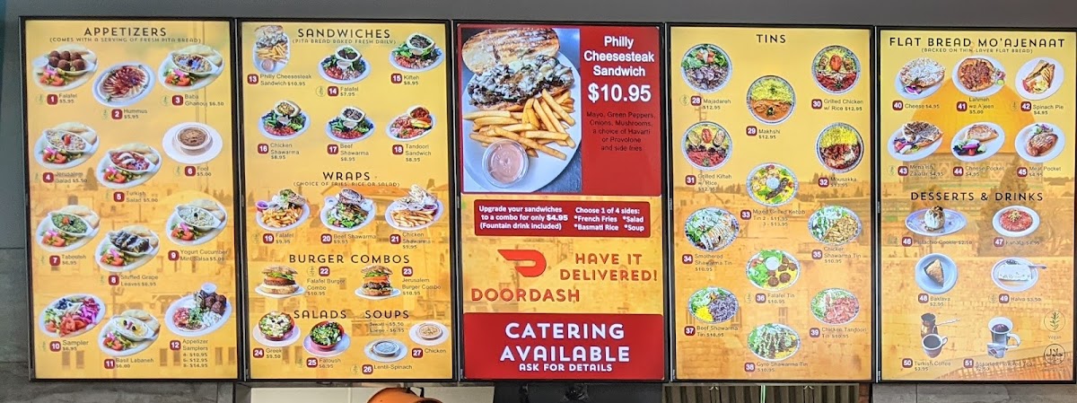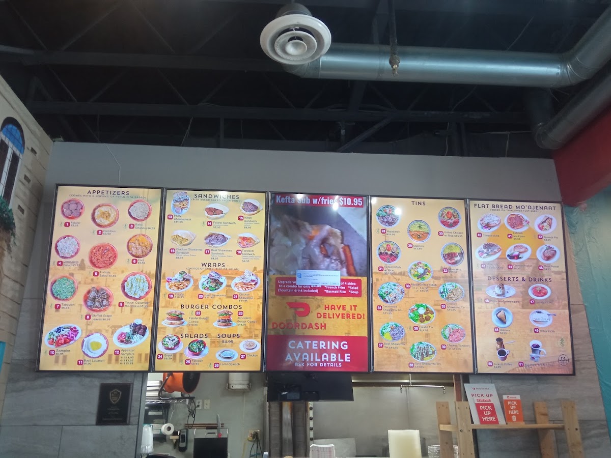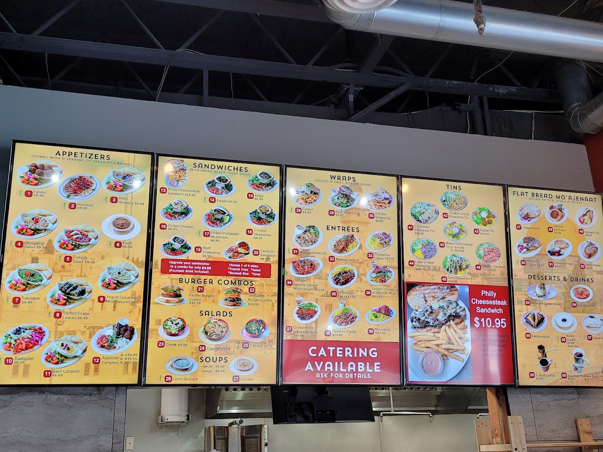 A beef kifteh patty with hummus, Turkish salad, tomatoes, onions, and cheese. Combo comes with french fries and 1 fountain drink.